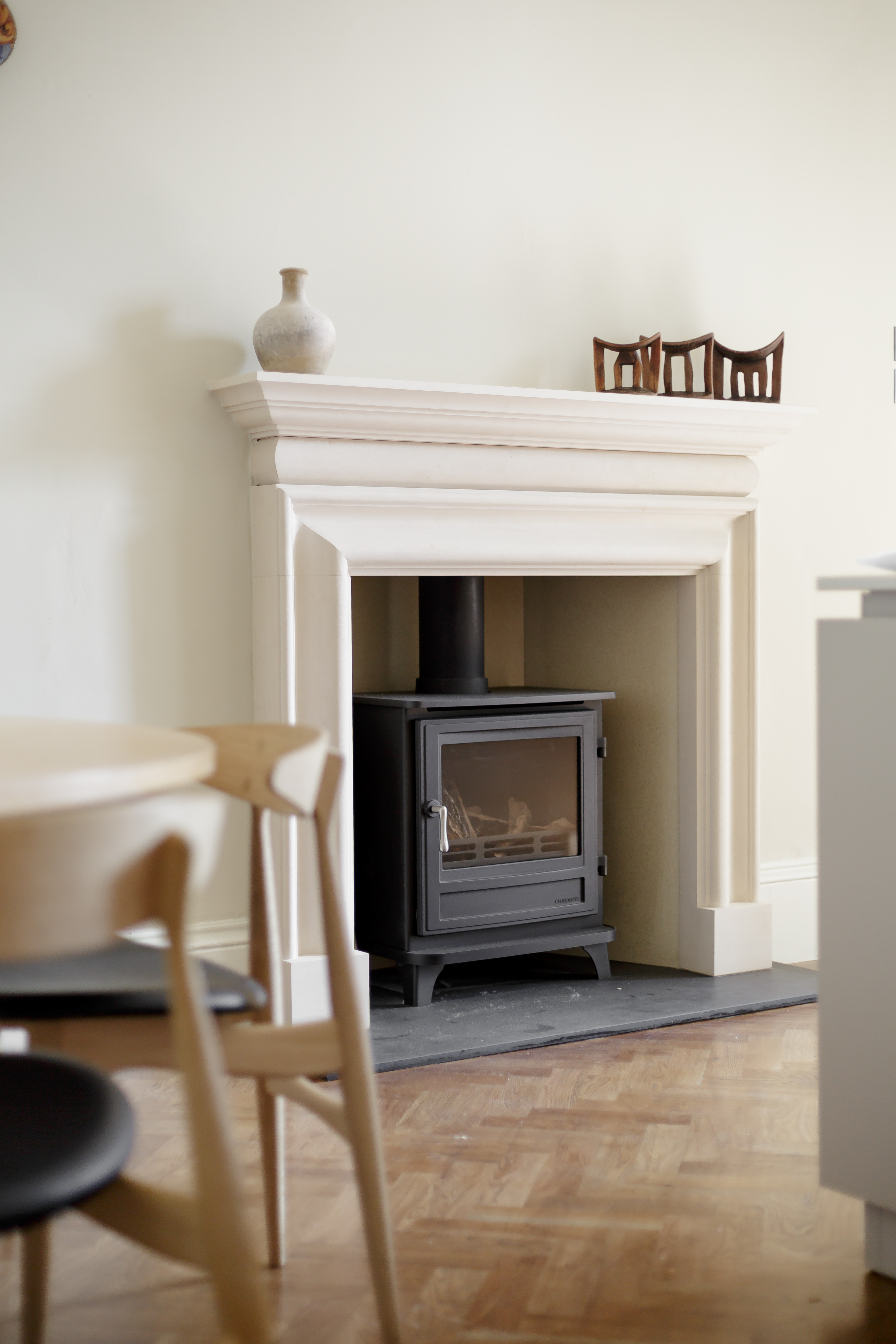 It is not uncommon for our team to discover fireplace concealed behind walls. In the below example the original chimneypiece had been lost and the chamber concealed when the room was used as a bedroom. On our discovery we reinstated the fireplace with a new stone chimneypiece, stove and slate hearth. Now in full working order, it sits proudly in what is now the kitchen of this beautiful property.
